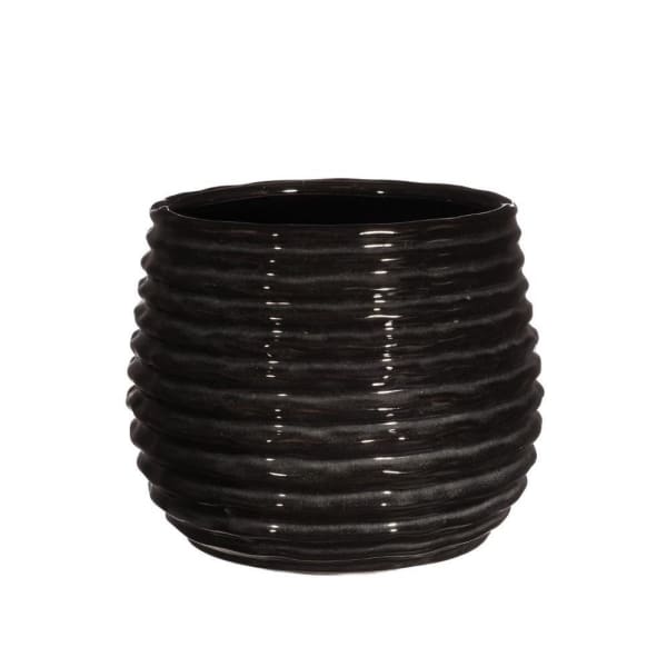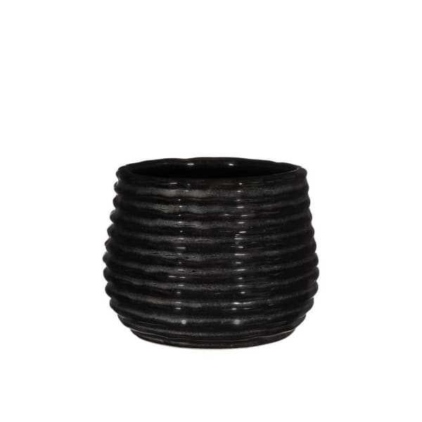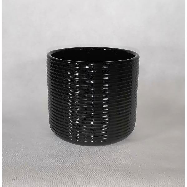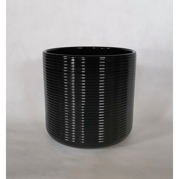 Κεραμικό Κασπώ Κύλινδρος Ριγέ Μαύρο D19xH18 cm (καρτέλα 4)