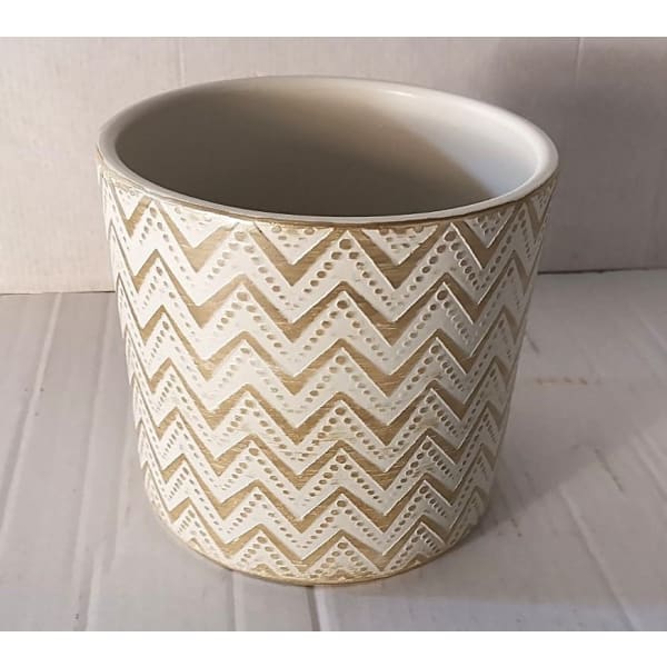 Κεραμικό Κασπώ Κύλινδρος Ριγέ Λευκό D19xH18 cm (καρτέλα 4)