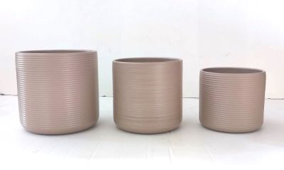 Κεραμικό Κασπώ Κύλινδρος Ριγέ Μόκα ματ D19xH18 cm (καρτέλα 4)