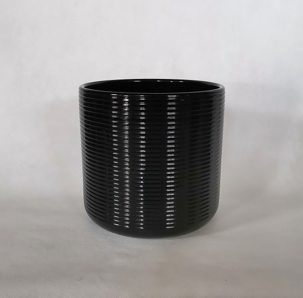 Κεραμικό Κασπώ Κύλινδρος Ριγέ Μαύρο D17xH16 cm (καρτέλα 4)