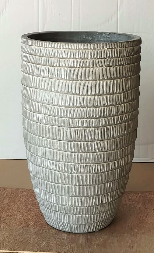 Τσιμεντένιο κασπώ με ανάγλυφη ριγέ υφή σε λευκή απόχρωση, διαστάσεων D20xH32 cm. Ιδανικό για μοντέρνες ανθοσυνθέσεις, γαμήλια διακόσμηση και επαγγελματικά events.